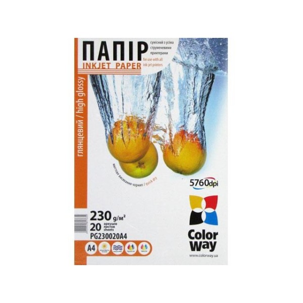Фотопапір глянцевий CW А4 230г/м2 картонна упаковка (20) PG230-20/PG230020A4/7634