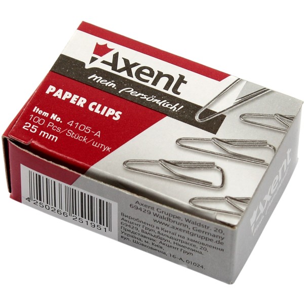 Скріпки 25мм Axent трикутні з вигином нікельовані 100 шт (20) (240) 4105