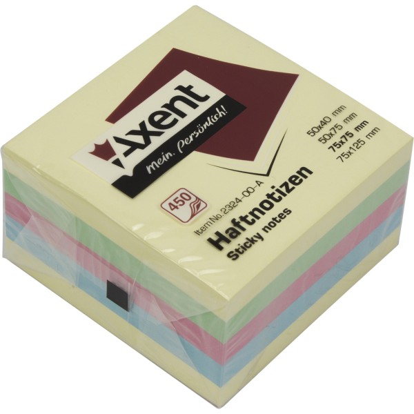 Блок для заметок с липким слоем 75х75 мм 450 листов пастель Axent куб 2324-00
