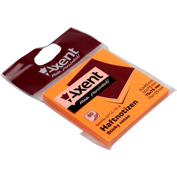 Блок для заметок с липким слоем 75х75мм Axent 80 листов ярко-оранжевый (1) (120) 2414-15