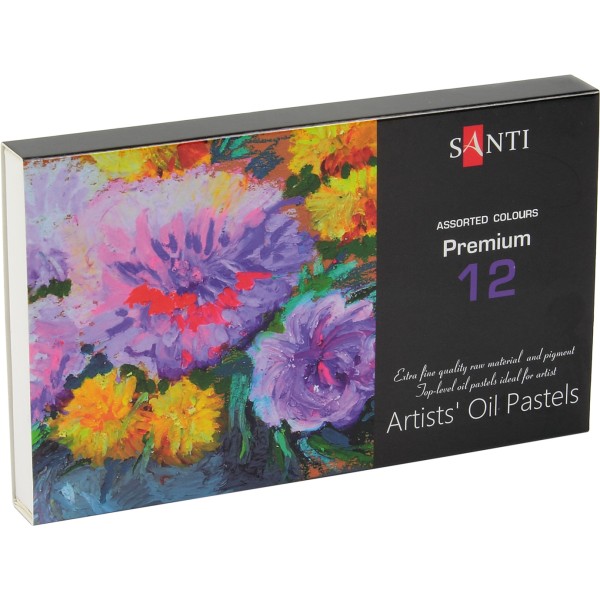 Набір олійної пастелі SANTI. Масляна пастель SANTI може бути використана, як для художніх, так і для декоративних робіт. Представлена наборами 12, 24 і 36 кольорів. Пастель від бренду SANTI відрізняється хорошою змішуваність, м'якістю, відмінною покривний здатністю. Має яскраві і інтенсивні кольори.