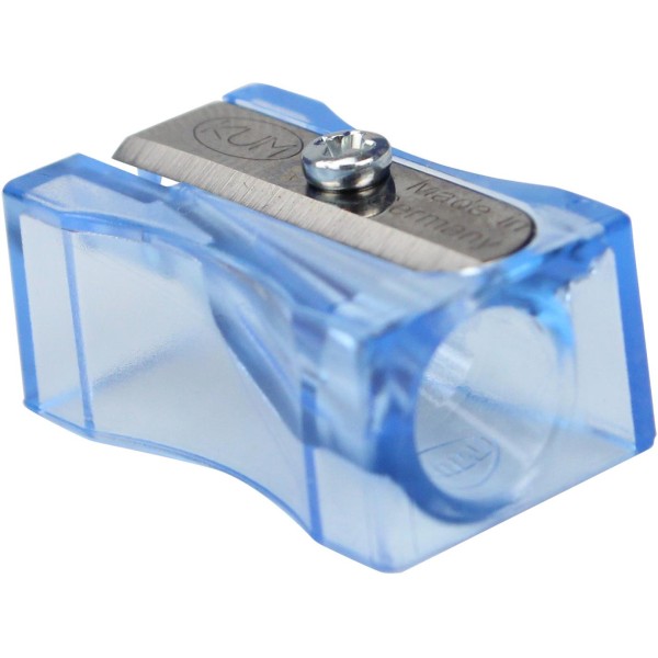 Пластикова точилка KUM має прямокутний корпус флуоресцентного кольору зі зручними виїмками для пальців. Надгострі вигнуті леза з легкістю заточують будь-які олівці, навіть олівці поганої якості. Корпус з первинного пластику дуже міцний, виконаний максимально точно. Леза захищені від іржі. Асорті флуоресцентних кольорів: прозорий синій, прозорий рожевий, прозорий жовтий.