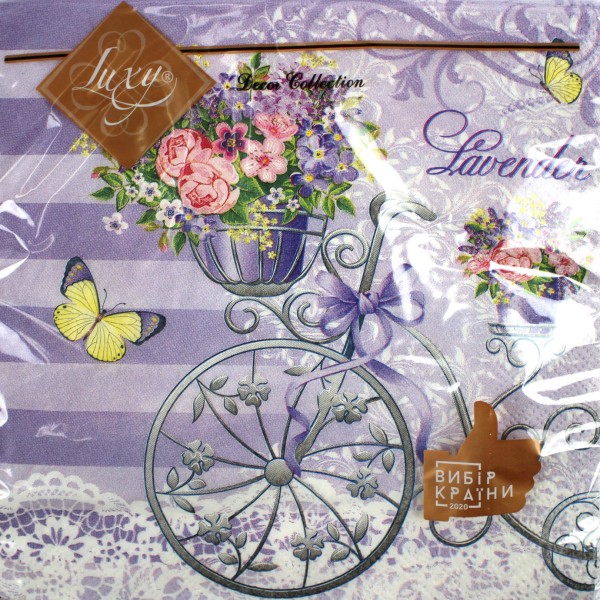 Серветки столові ТМ "Luxy" 3-х шарові (18шт) Лавандова композиція(16)